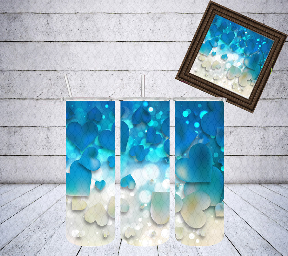 Blue and Beige Heart Tumbler with Lid and Straw, Insulated Skinny Tumbler, 20 oz Water Cup