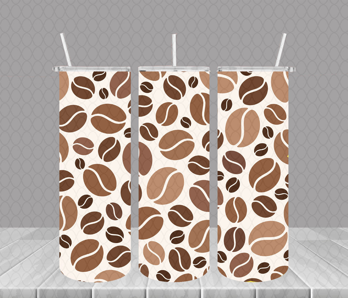 Coffee Beans Tumbler with Lid and Straw, Insulated Skinny Tumbler, 20 oz Water Cup