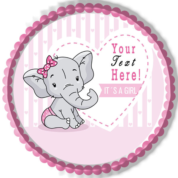 It's a Girl Elephant Baby Shower - Edible Cake Topper, Cupcake Toppers, Strips