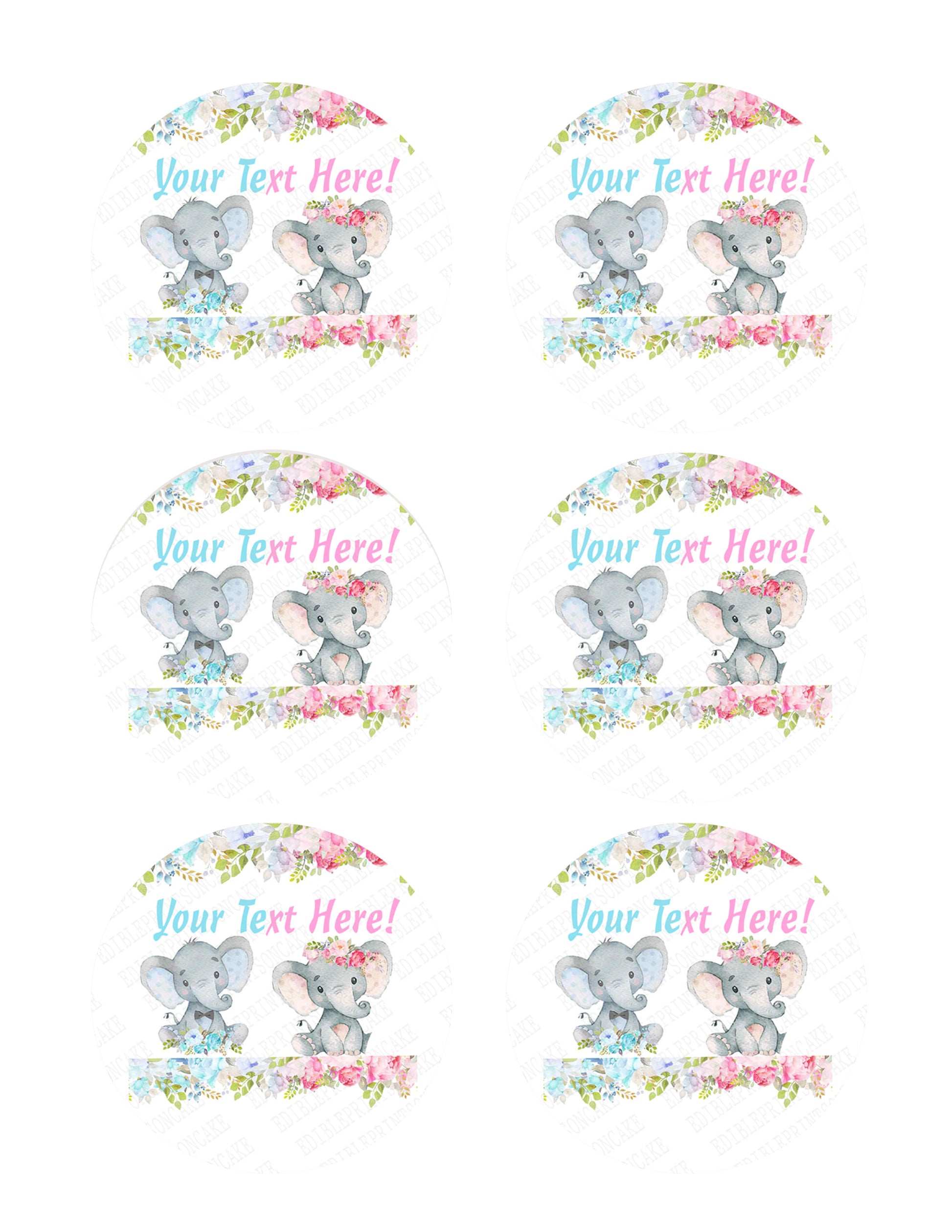 Mocsicka Elephant Gender Reveal Baby Shower - Edible Cake Topper, Cupcake Toppers, Strips