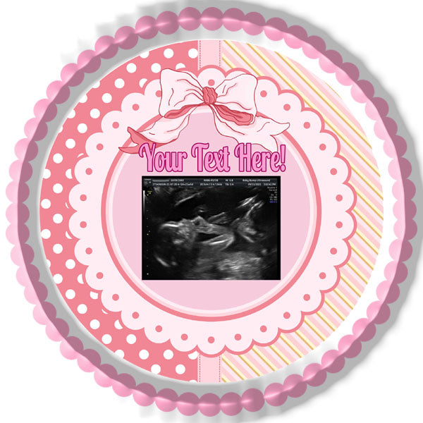 Ultrasound Pink - Edible Cake Toppers, With Custom Sonogram Pictures - Edible Cake Topper, Cupcake Toppers, Strips