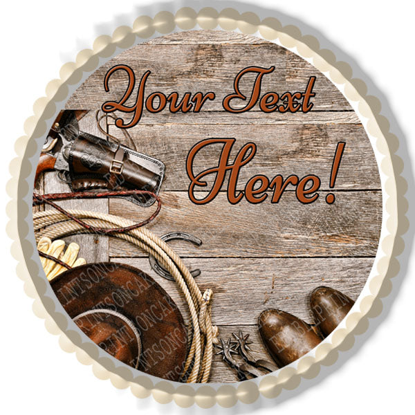 Western Cowboy Ranching Gear - Edible Cake Topper, Cupcake Toppers, Strips